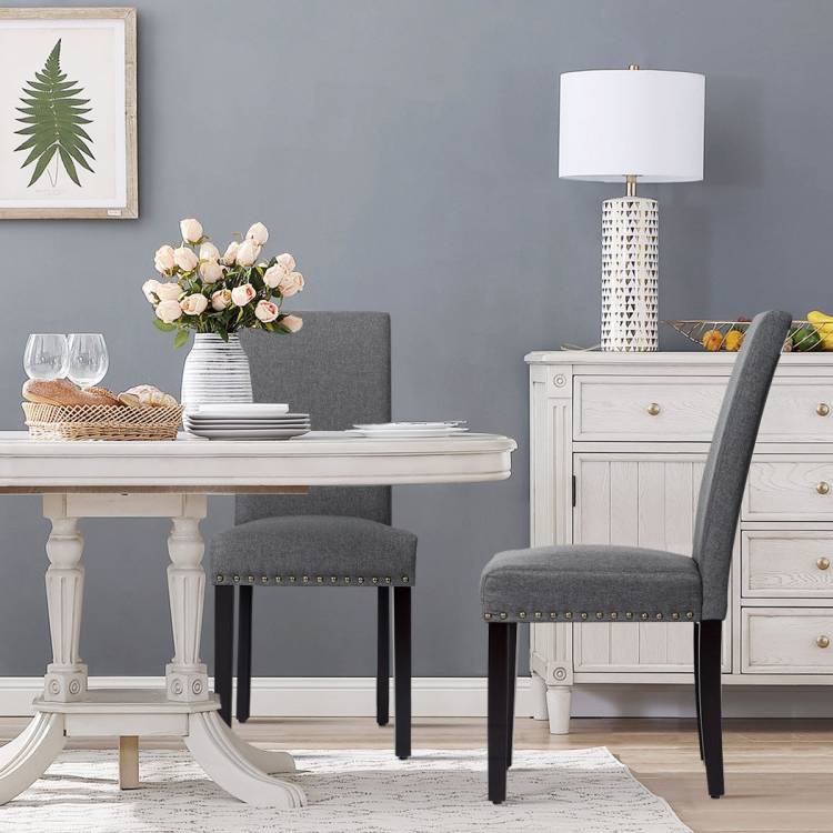 • Set of 2 Grey Linen Upholstered Nailhead Dining Chair - 330 lbs. Weight Capacity