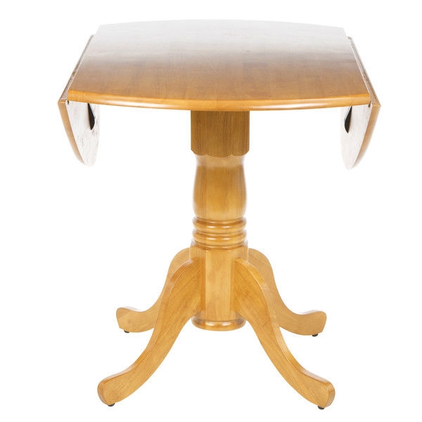 This Round 42-inch Drop-Leaf Dining Table in Oak Wood Finish adds a blush of elegance to your dining area. This round shaped dining table features a pedestal base with intricate carvings. It has a drop leaf on both the sides, which can be expanded anytime. It is an attractive addition to a traditional home setting. The solid construction of the table ensures years of reliable use. This dining table is ideal for a casual dining setting and it has a seating capacity of four people. It is available in multiple finishes. The Round 42-inch Drop-Leaf Dining Table in Oak Wood Finish is easy to assemble. It can be regularly wiped with a clean and damp cloth.