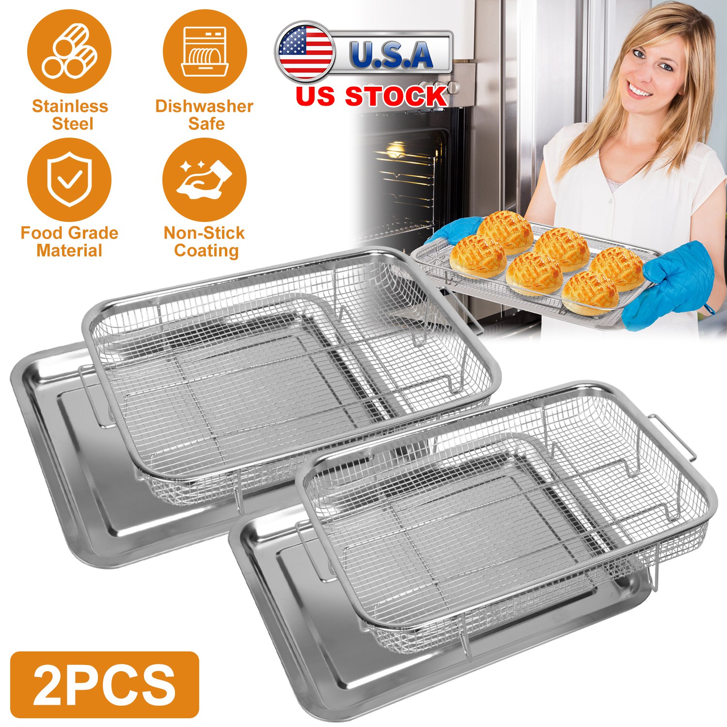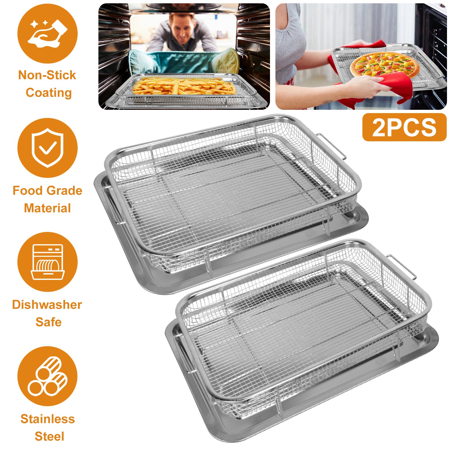 2Pcs Air Fryer Basket Tray 15.35x11.61in Stainless Steel Rustproof Non-Stick Oven Pan and Tray For Bake Grill Crispy Food Dishwasher Safe